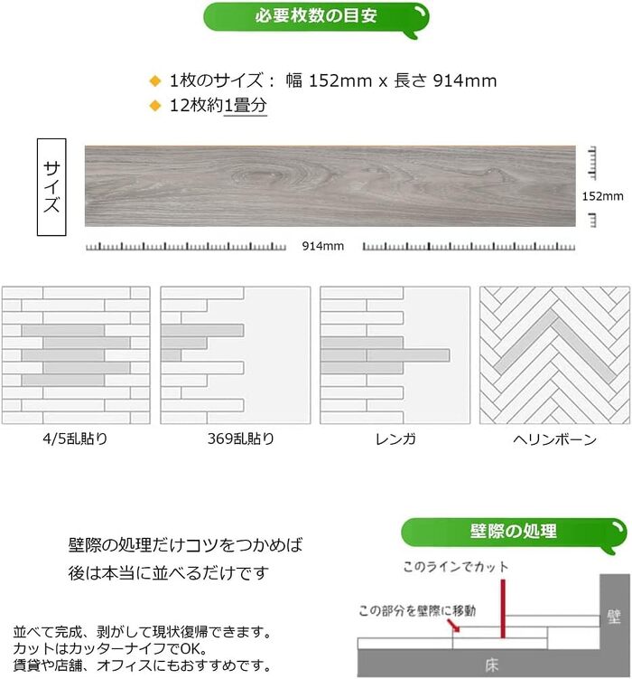 キズや汚れで古くなった床にペタっと貼るだけ!簡単に、おしゃれに床をリメイク出来ます。