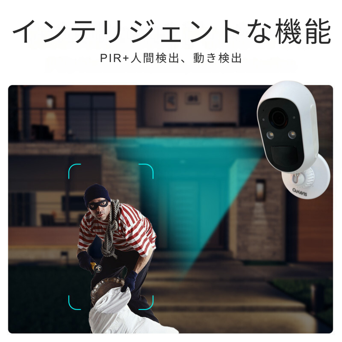 防犯カメラのPIR検出技術は、赤外線センサーが人の体温から放射される赤外線を感知し、その変化を検知します。人がセンサーの範囲内に入ると、センサーは赤外線の変化を検知し、すぐにカメラに通知するため、不審者や侵入者を早期に検知することができます。また、動物や風などの誤検知を最小限に抑えるため、高い検知精度を持っています。防犯カメラに動き検出された場合、カメラが映像を自動的に録画し、すぐにスマホアプリに通知を送信します。そして、自動的に不審者の映像が保存できで、お宅と財産の安全も見守ります。長期間の出張や海外旅行の際にも安心です。24時間365日ご家族やお宅の安全を守りします。